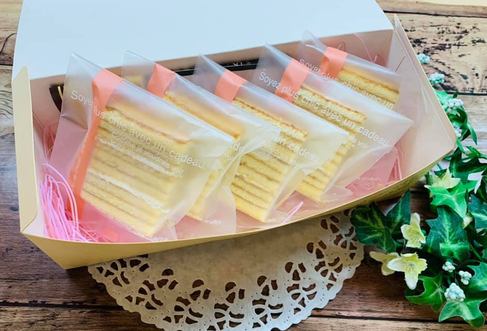 国産の小麦粉を100%使用した、ふんわり優しいお味の四角いバームクーヘンです。